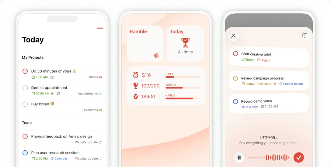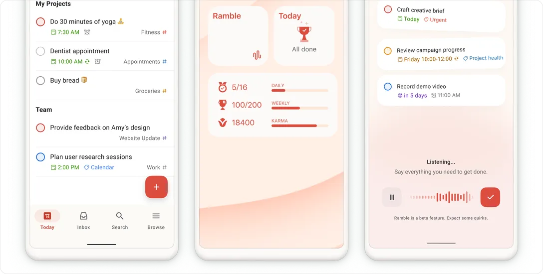 Todoist makes it frictionless to get all your tasks out of your head and organized in one trusted place.