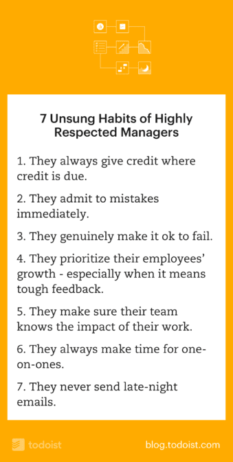 One-on-one meetings are at the center of strong communication and trust between manager and team member. They’re what make all of the other habits of respected managers possible.