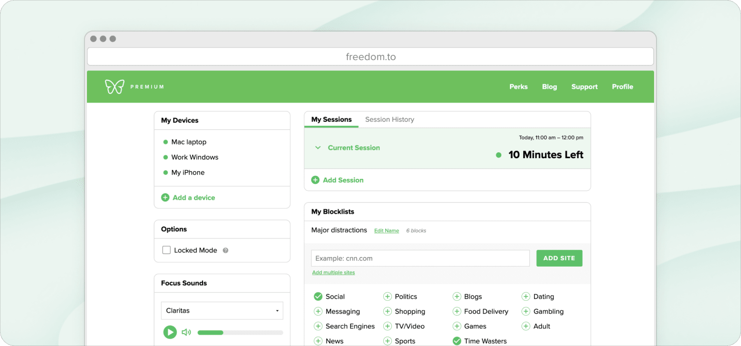 Pricing: The lite version is free to use and includes limited project tracking and report experts. Premium ($12/month) comes with unlimited history and features like focus time distraction blocking, offline time tracking, real-time alerts, custom work hours, and more.