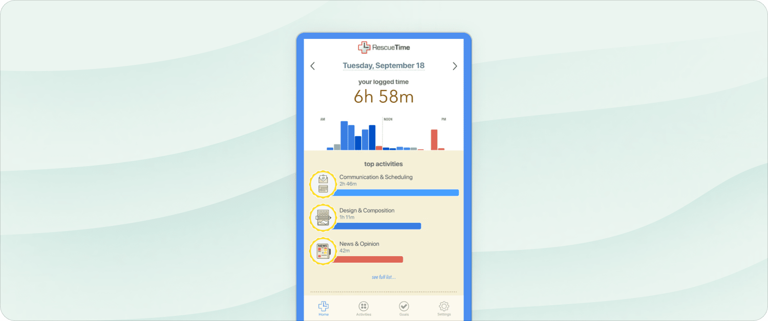 RescueTime is the time tracking app for people who hate time tracking. It provides a treasure trove of personal insights without you ever having to start or stop a timer.