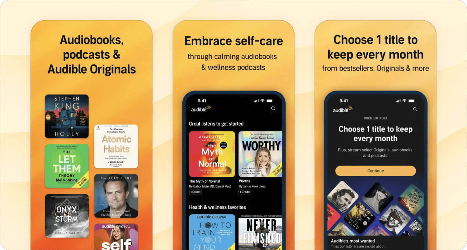 33. Audible – For listening to books and podcasts