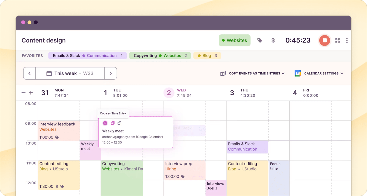 2. Toggl Track – For manual time tracking, especially if you work with clients