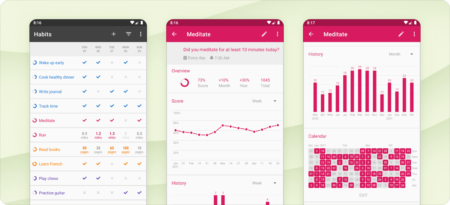 Our pick for Android, Loop offers many of the same features as Streaks – custom habit tracking, beautiful graphs and stats, streak-building, reminders, and more.