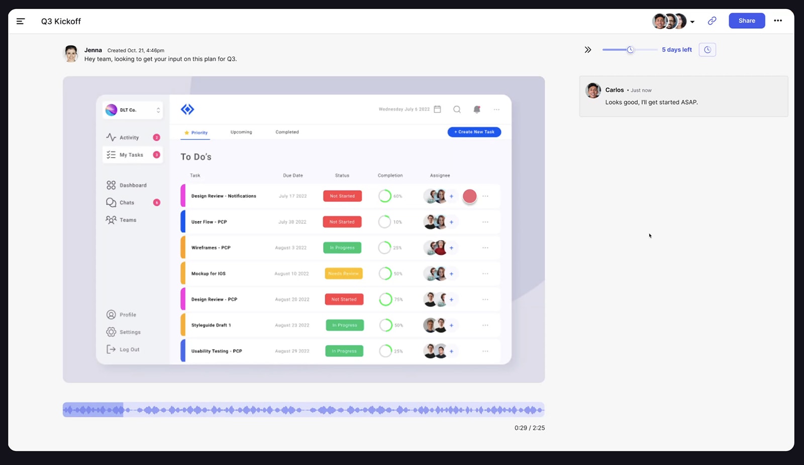 Although it’s a great app for productivity in real time, Bubbles is just as helpful with async communication. With its screen recording feature, you can share quick videos and tag team members, who can answer questions or share feedback with their own bubbles.