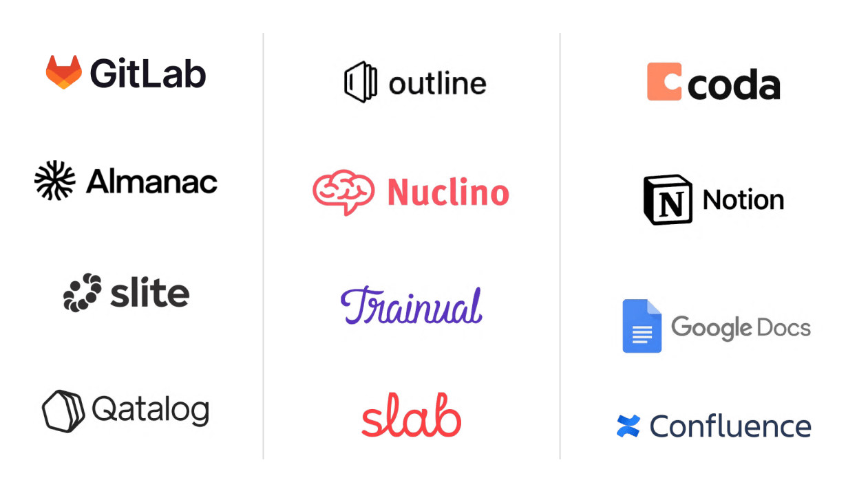 Several popular options are available, each with its strengths. Tools like Confluence, Slite, Trainual, Notion, and Google Docs offer user-friendly interfaces and collaboration capabilities. While version control systems like GitHub and GitLab are preferred for technical documentation and coding projects. It's also essential to assess scalability, integration capabilities, and pricing when making your decision.