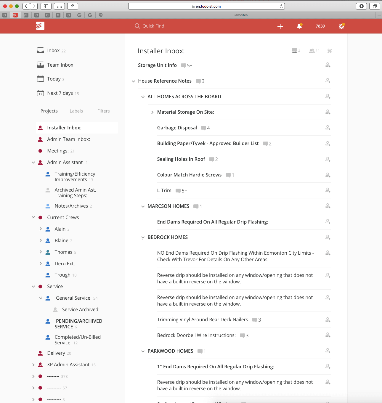 They began using it to manage simple routine tasks, like organizing material delivery routes, but quickly realized that the app could handle task management in other areas of the company too. Fast forward to today and the majority of team project coordination and communication happens in Todoist. Now when a new member joins the Topline team, one of the first things their required to do is download the Todoist app and set up an account.