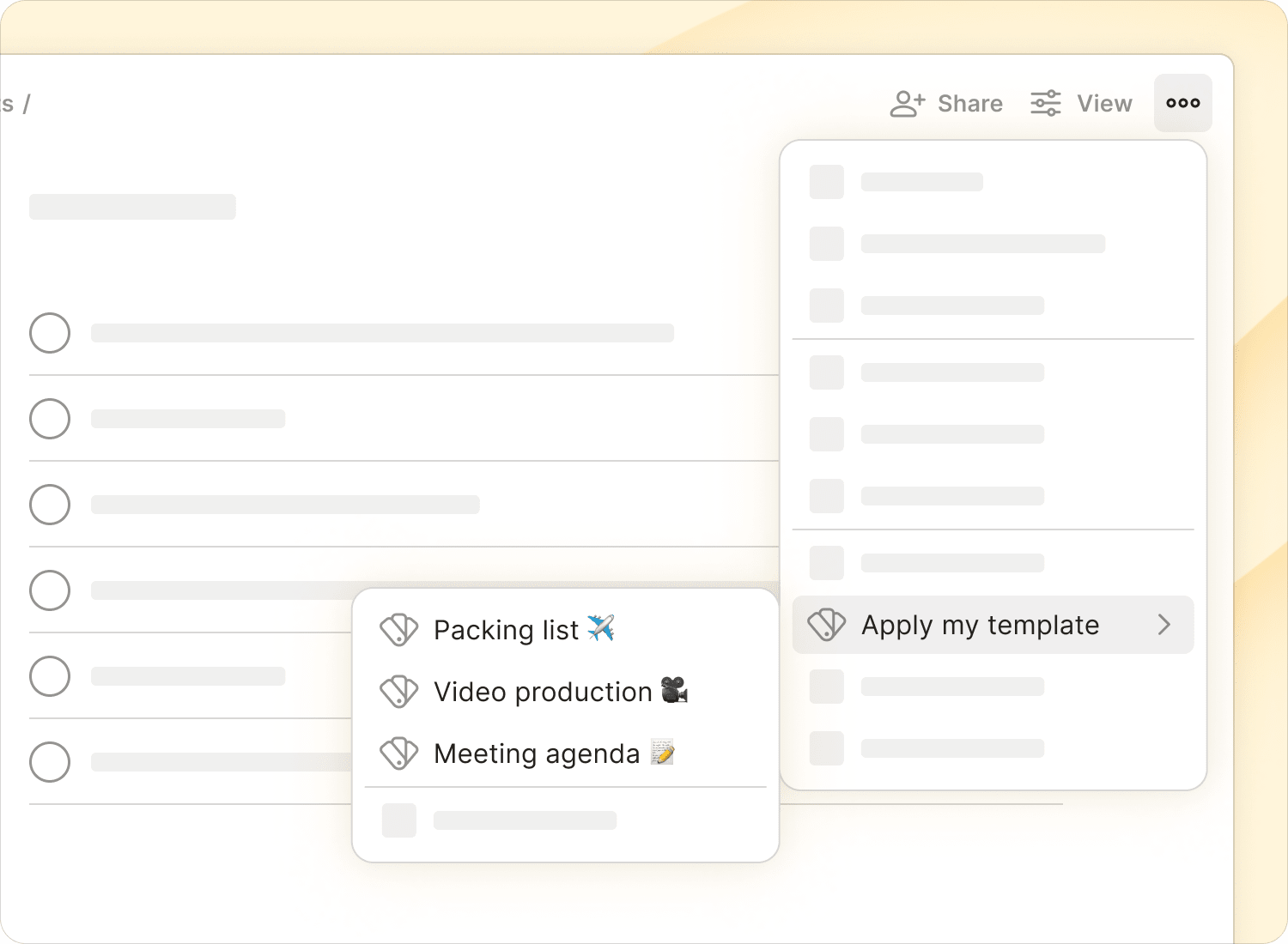 Alternatively, apply a template to a project you’ve already created. Click the three dots icon to open the project menu and select Apply my template. Then, choose a template from the list or click Browse my templates.
