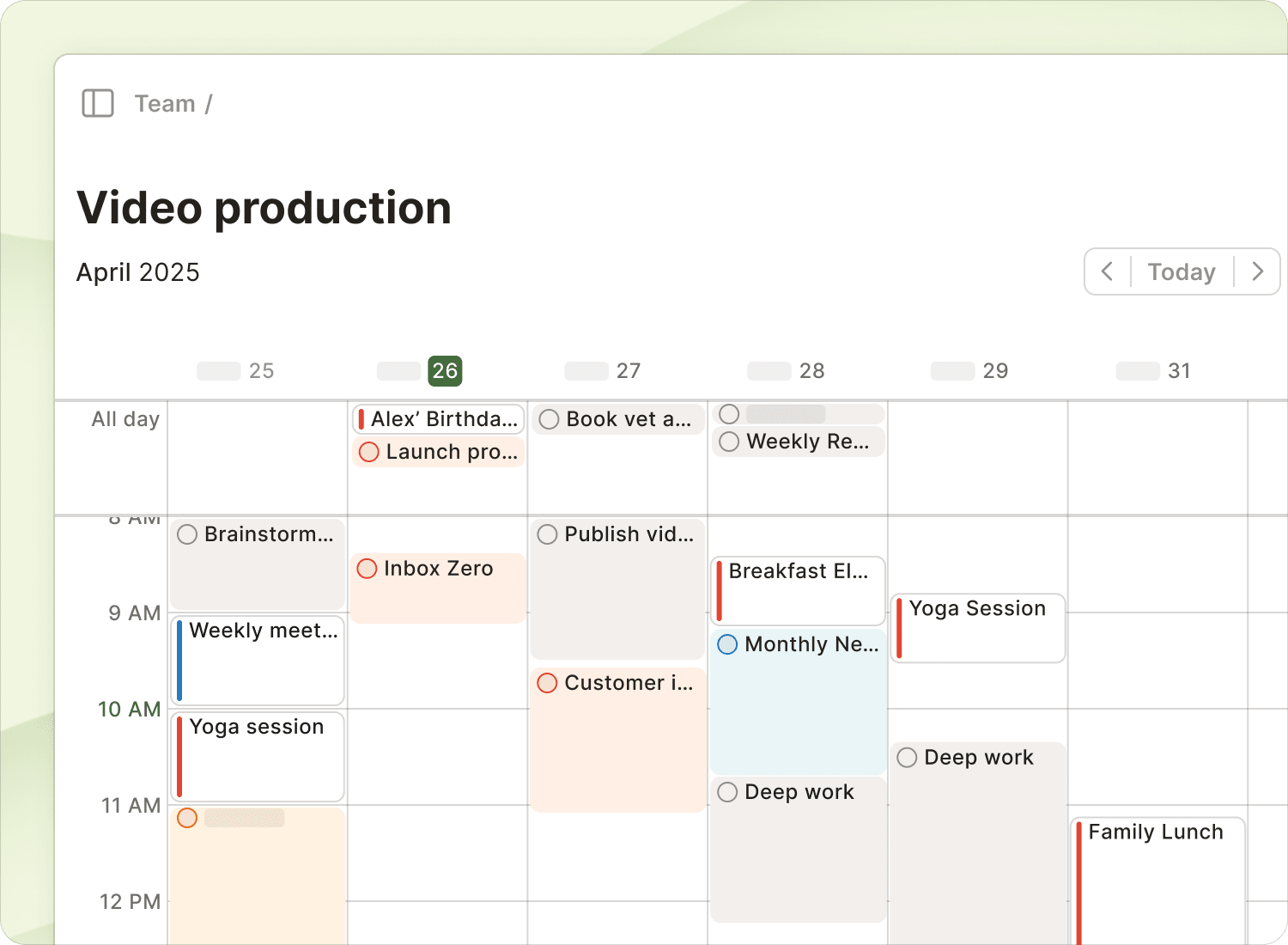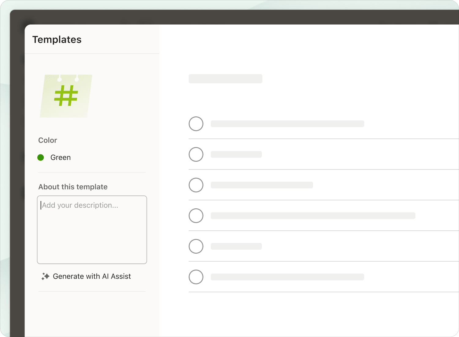 Looking for inspiration? Instead of creating and reusing your own projects, try a premade template. Click Browse templates to see dozens of options everyone can use for projects like deep work and one-on-one meetings. You’ll also see templates for sales and marketing teams, product teams, customer support teams, and more.