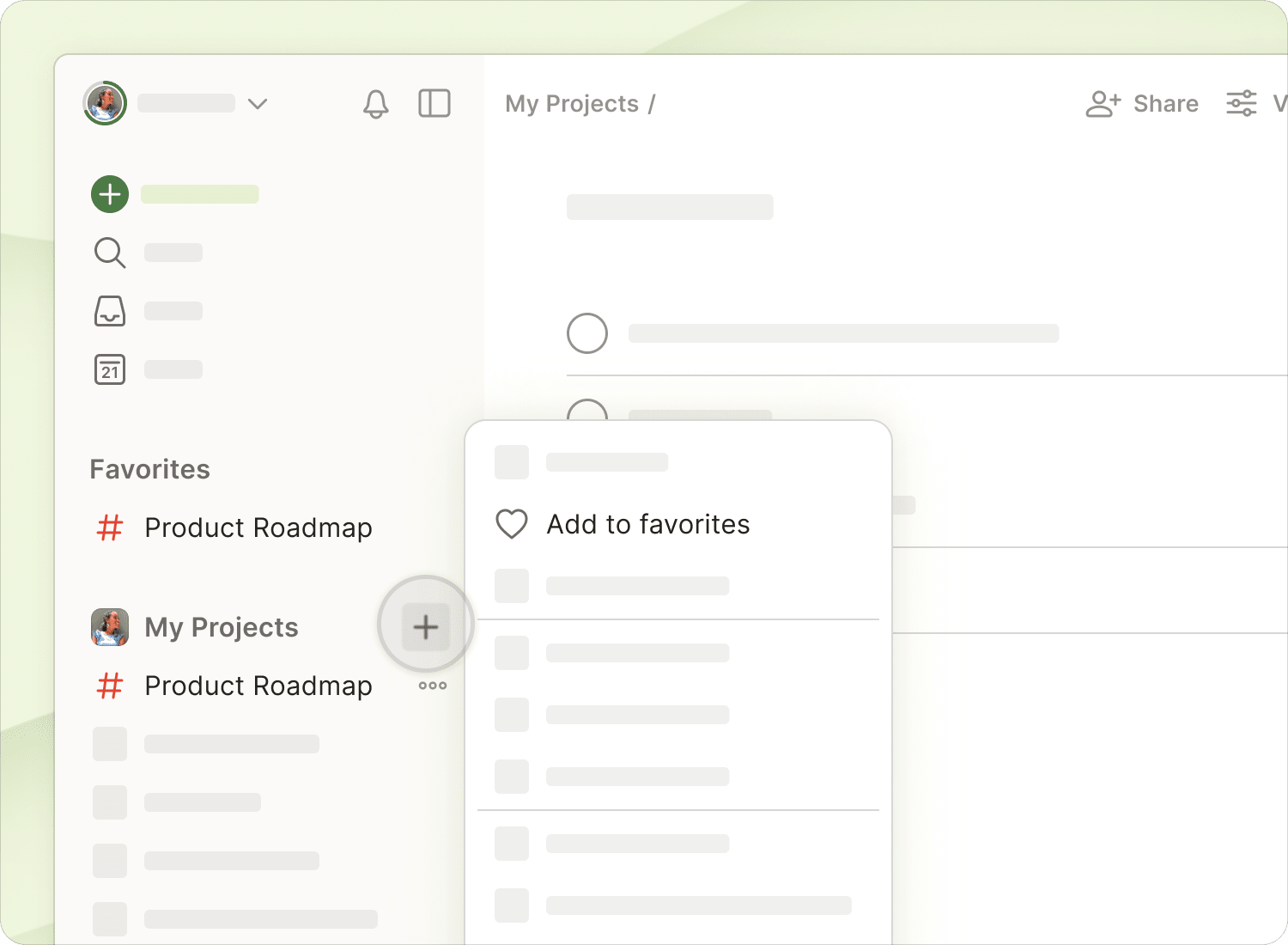 If you have a project, label, or filter that‘s particularly important to your workflow, keep it beside you at all times by saving it to your favorites. Favorited items will always be visible on your navigation pane to the left, right below Upcoming.