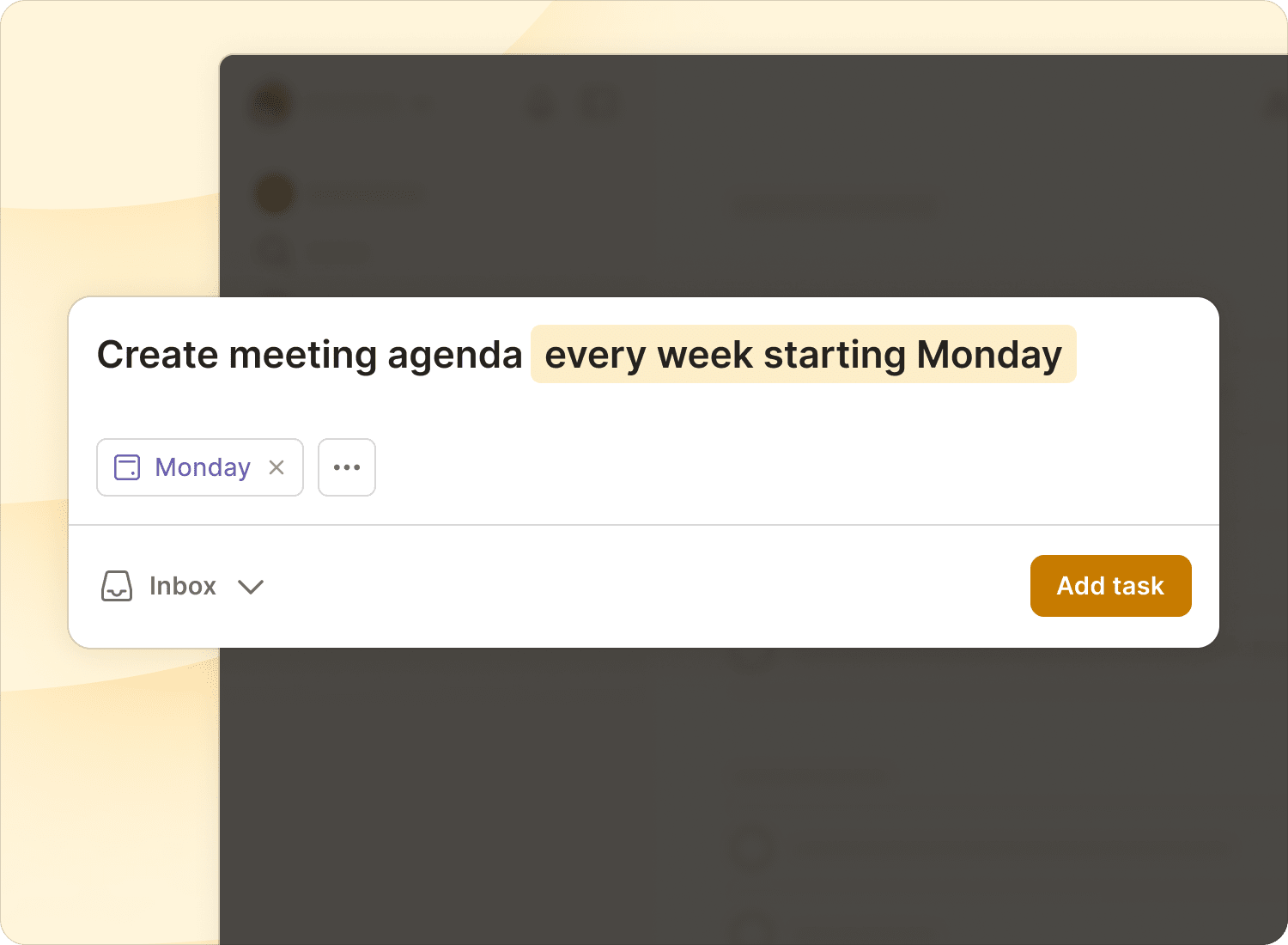 To set a recurring due date, type the date into the task field using natural language just like you would for regular due dates. For example, every day, every Friday, every 3 days starting next Monday, and more.