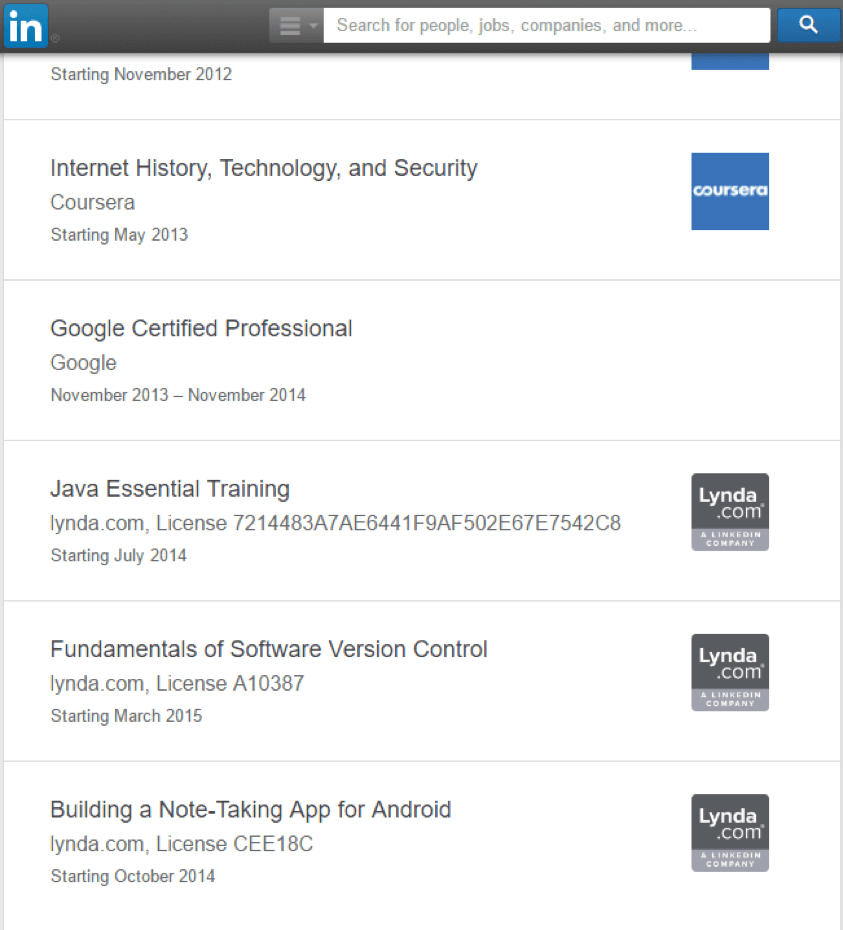 Like other MOOCs, the majority of Lynda courses offer you a Certificate upon completion that can be shared with others to verify that you’ve done the work.  Also, like some of the other learning sites out there you can (of course) connect your certificate to your LinkedIn profile to add a dash of authenticity to your profile.