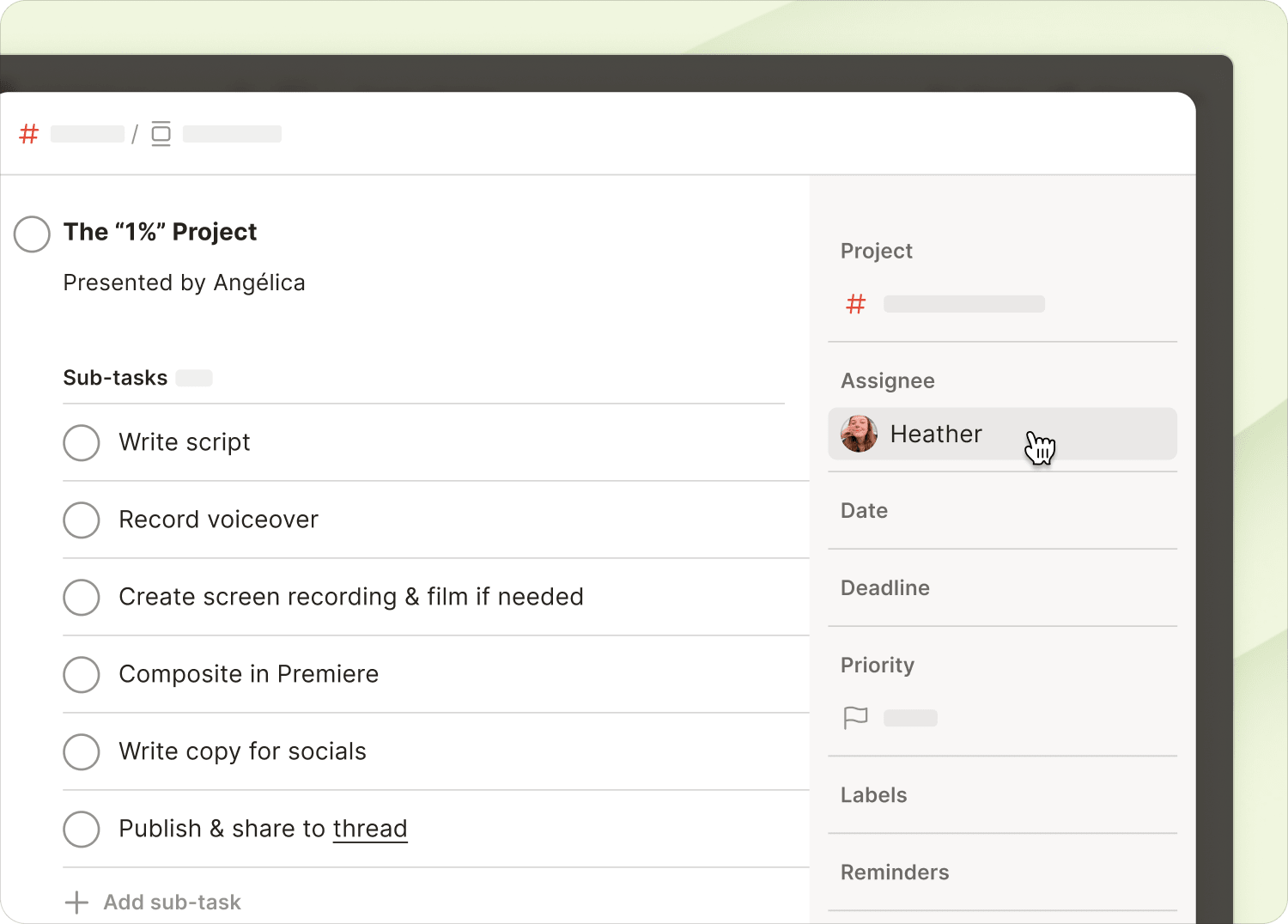 In Todoist, assigning responsibilities is even simpler. As soon as the meeting ends, add a new task to your project and assign it to the team member responsible for completing it. You can leave any notes or resources in the description or comment.