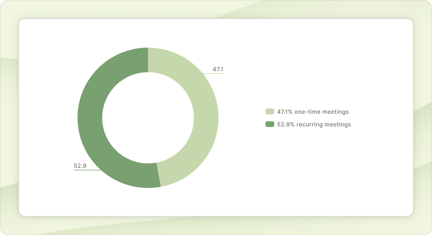 Start by conducting a meeting audit of all your recurring meetings. Reclaim’s survey found 52.9% of meetings in a typical calendar are regular meetings.