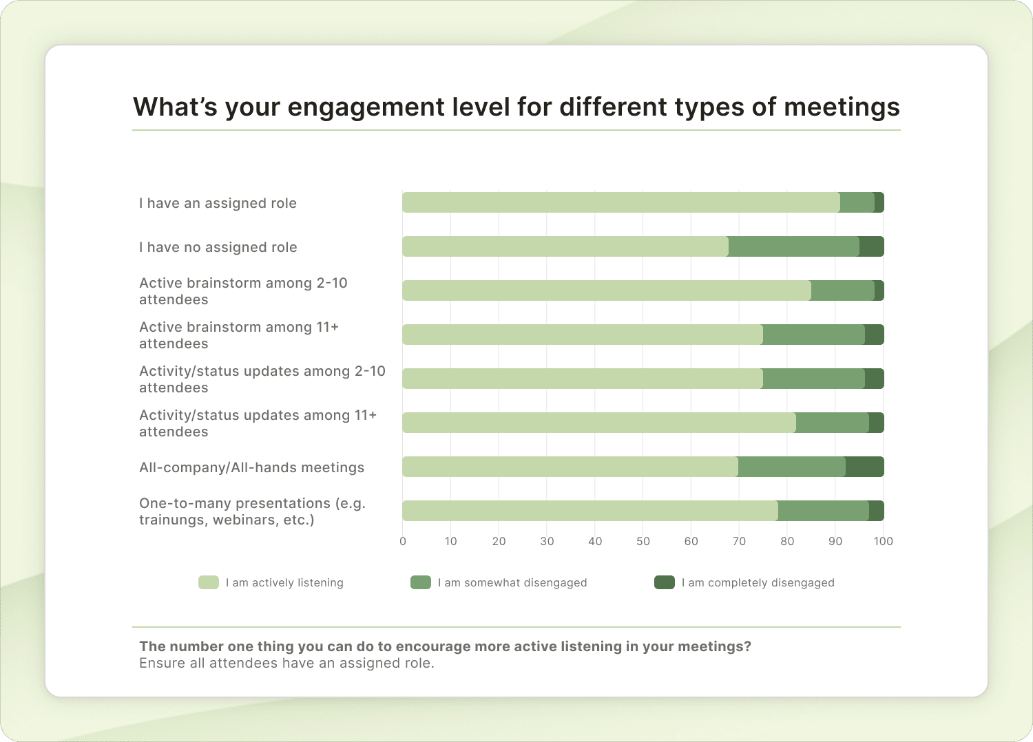 Do you expect participants to bring questions, solutions, or build on what others say? The more defined a participant's role is in a meeting, the more engaged they tend to be.