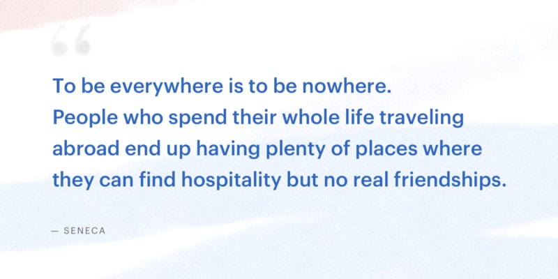 There are people out there who love the travel-and-work lifestyle, but for many it’s nothing like social media would lead you to believe. As humans, we need real friends, loved ones, and a place where we belong. Extensive research shows that people with strong social ties live longerhealthierhappier lives. No matter what Airbnb might tell you, you cannot “belong anywhere” instantly. Community takes time to build — there are no shortcuts.
