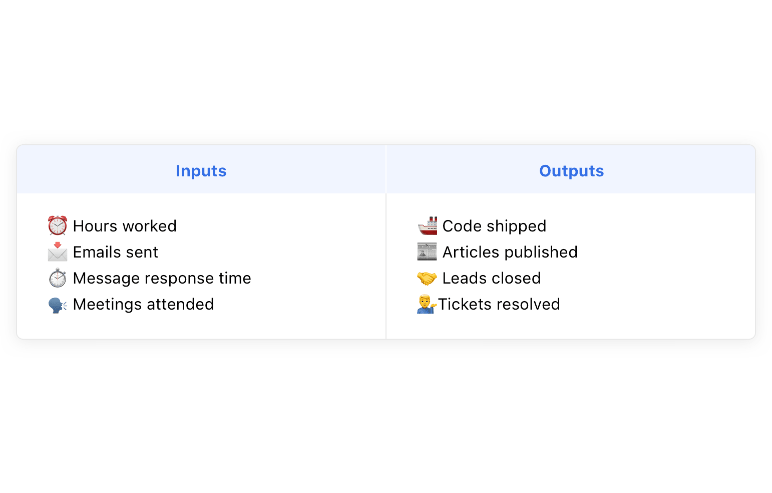 Focus on outputs over inputs